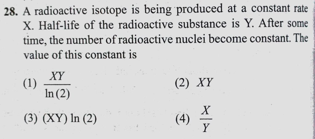 A radioactive isotope is being produced at a constant rate X. Half-life of the radioactive substance is Y. After some time, the number of radioactive nuclei become constant. The value of this constant is A radioactive isotope is being produced at a constant rate X. Half-life of the radioactive substance is Y. After some time the number of radioactive nuclei become constant. The value of this constant is October 17, 2020 Category: Uncategorised (JEE Advanced Physics by BM Sharma + GMP Solutions) , Facebook Messenger WhatsApp Share this:TwitterFacebook Related