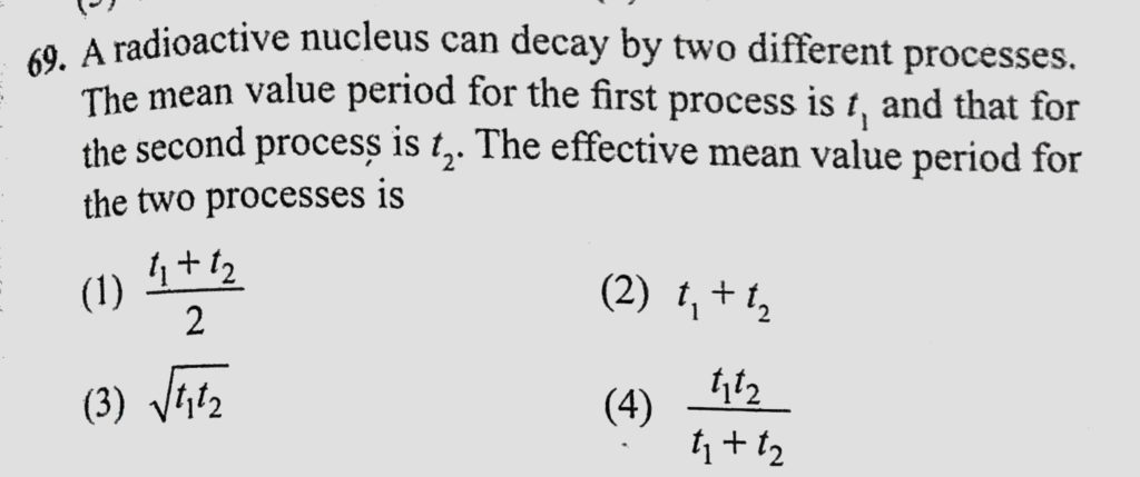 A radioactive nucleus can decay by two different processes. The mean value period for the first process is t1 and that for the second process is t2. The effective mean value period for A radioactive nucleus can decay by two different processes. The mean value period for the first process is t1 and that for the second process is t2. The effective mean value period for October 18, 2020 Category: Uncategorised (JEE Advanced Physics by BM Sharma + GMP Solutions) , Facebook Messenger WhatsApp Share this:TwitterFacebook Related