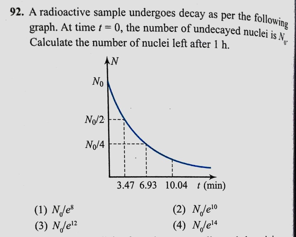 A radioactive sample undergoes decay as per the following graph. At time t = 0, the number of undecayed nuclei is N0. Calculate the number of nuclei left after 1 h. A radioactive sample undergoes decay as per the following graph. At time t = 0 the number of undecayed nuclei is N0. Calculate the number of nuclei left after 1 h. October 18, 2020 Category: Uncategorised (JEE Advanced Physics by BM Sharma + GMP Solutions) , Facebook Messenger WhatsApp Share this:TwitterFacebook Related