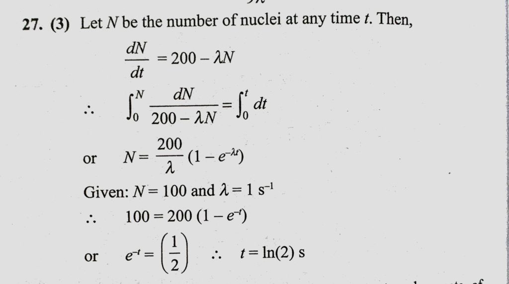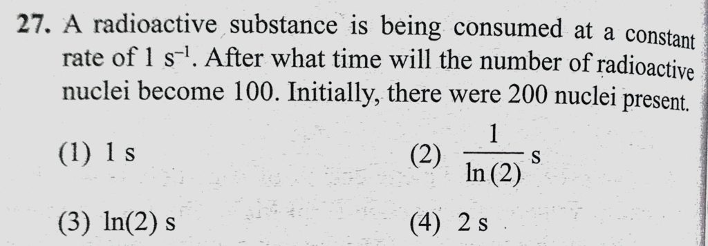 A radioactive substance is being consumed at a constant rate of 1 s^-1. After what time will the number of radioactive nuclei become 100. Initially, there were 200 nuclei present. A radioactive substance is being consumed at a constant rate of 1 s^-1. After what time will the number of radioactive nuclei become 100. Initially there were 200 nuclei present. October 17, 2020 Category: Uncategorised (JEE Advanced Physics by BM Sharma + GMP Solutions) , Facebook Messenger WhatsApp Share this:TwitterFacebook Related