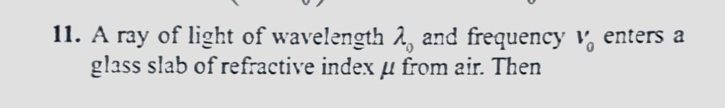 A ray of light of wavelength lemda 0 and frequency v0 enters a glass slab of refractive index mu from air. Then A ray of light of wavelength lemda 0 and frequency v0 enters a glass slab of refractive index mu from air. Then October 11, 2020 Category: Uncategorised (JEE Advanced Physics by BM Sharma + GMP Solutions) , Facebook Messenger WhatsApp Share this:TwitterFacebook Related