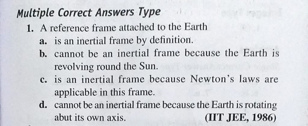 A reference frame attached to the Earth a. is an inertial frame by definition. b. cannot be an inertial frame because the Earth is revolving round the Sun. A reference frame attached to the Earth a. is an inertial frame by definition. b. cannot be an inertial frame because the Earth is revolving round the Sun. October 2, 2020 Category: Uncategorised (JEE Advanced Physics by BM Sharma + GMP Solutions) , Facebook Messenger WhatsApp Share this:TwitterFacebook Related