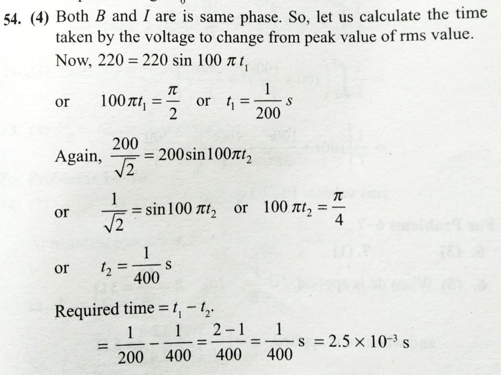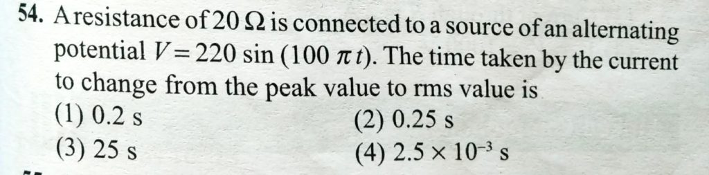 A resistance of 20 ohm is connected to a source of an altermnating potential V = 220 sin ( 100 pie t ). The time taken by the current to change from the peak value to rms value is the voltage and current in the primary are 200 V and 2 A respectively and voltage in secondary is 2000 V. The value of the current in secondary is October 27, 2020 Category: Uncategorised (JEE Advanced Physics by BM Sharma + GMP Solutions) , Facebook Messenger WhatsApp Share this:TwitterFacebook Related
