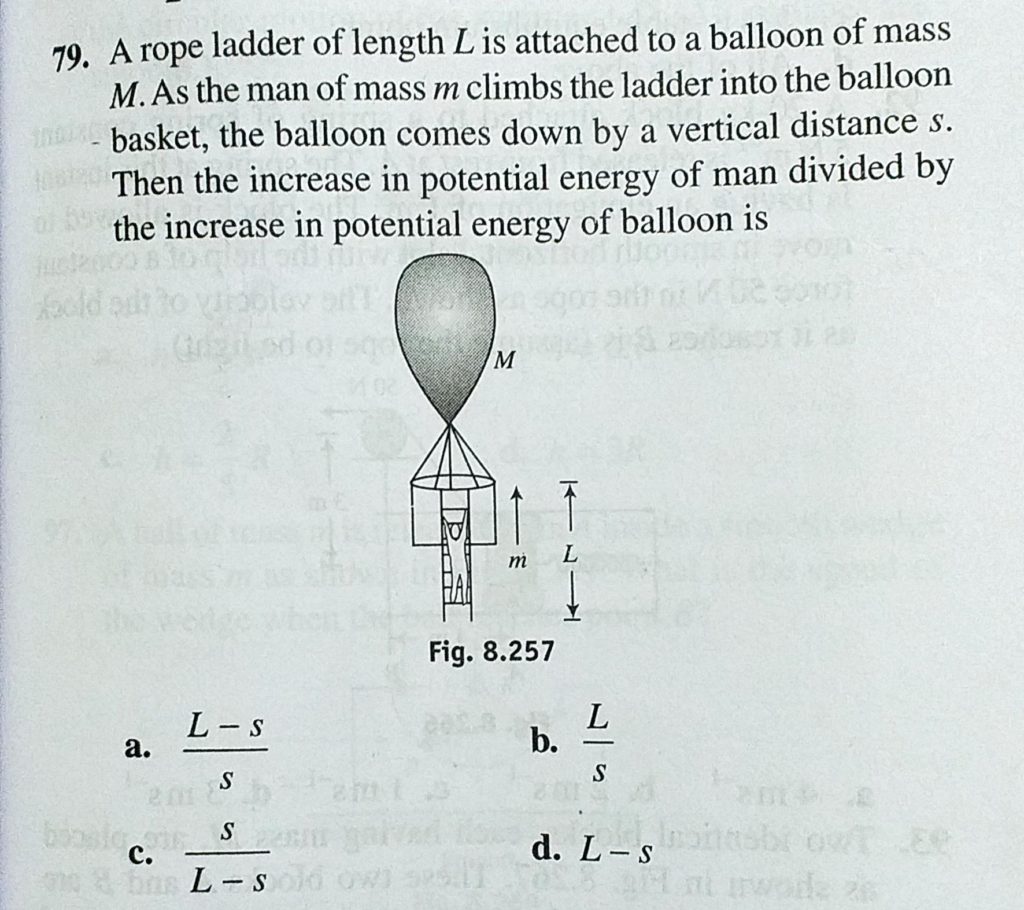A rope ladder of length L is attached to a balloon of mass M. As the man of mass m climbs the ladder into the balloon basket, the balloon comes down by a vertical distance s. A rope ladder of length L is attached to a balloon of mass M. As the man of mass m climbs the ladder into the balloon basket the balloon comes down by a vertical distance s. October 4, 2020 Category: Uncategorised (JEE Advanced Physics by BM Sharma + GMP Solutions) , Facebook Messenger WhatsApp Share this:TwitterFacebook Related