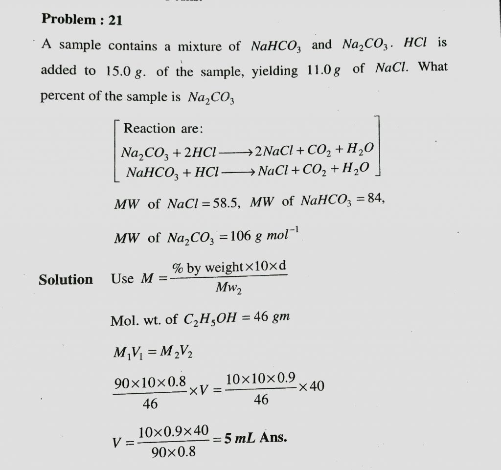 A sample contains a mixture of NaHCO3 and Na2CO3 . HCl is added to 15.0 g of the sample , yielding 11.0 g of Nacl. what percent of the sample is Na2CO3 A sample contains a mixture of NaHCO3 and Na2CO3 . HCl is added to 15.0 g of the sample yielding 11.0 g of Nacl. what percent of the sample is Na2CO3 November 25, 2020 Category: Uncategorised (JEE Advanced Physics by BM Sharma + GMP Solutions) , Facebook Messenger WhatsApp Share this:TwitterFacebook Related