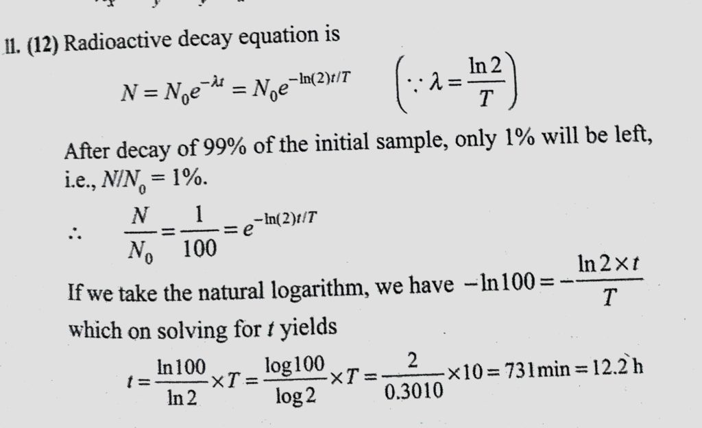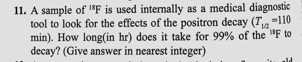 A sample of 18F is used internally as a medical diagnostic tool to look for the effects of the positron decay (T1/2 = 110 min). How long (in hr) does it take for 99% of the 18F to decay? A sample of 18F is used internally as a medical diagnostic tool to look for the effects of the positron decay (T1/2 = 110 min). How long (in hr) does it take for 99% of the 18F to decay? October 20, 2020 Category: Uncategorised (JEE Advanced Physics by BM Sharma + GMP Solutions) , Facebook Messenger WhatsApp Share this:TwitterFacebook Related