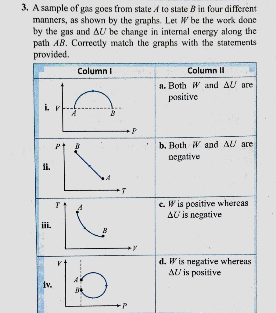A sample of gas goes from state A to state B in four different manners, as shown by the graphs. Let W be the work done by the gas and delta U be change in internal energy along the A sample of gas goes from state A to state B in four different manners as shown by the graphs. Let W be the work done by the gas and delta U be change in internal energy along the October 29, 2020 Category: Uncategorised (JEE Advanced Physics by BM Sharma + GMP Solutions) , Facebook Messenger WhatsApp Share this:TwitterFacebook Related