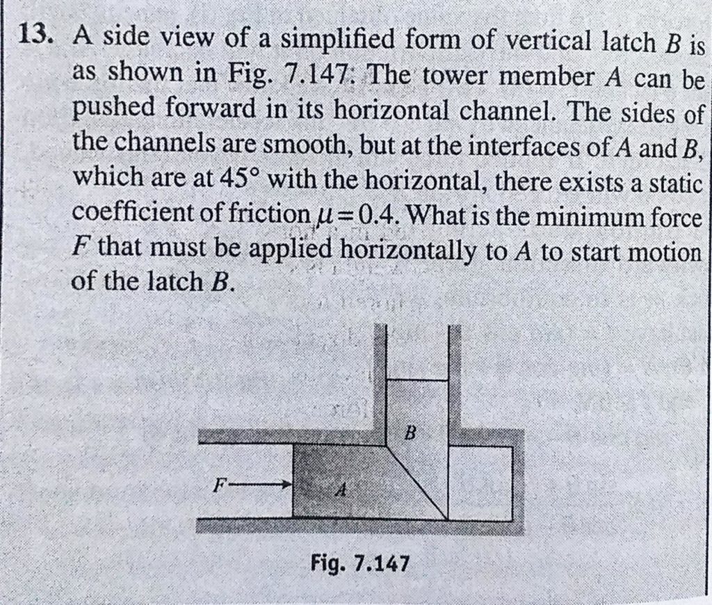 A side view of a simplified form of vertical latch B is as shown in Fig. 7.147. The tower member A can be pushed forward in its horizontal channel. The sides of the channels are smooth A side view of a simplified form of vertical latch B is as shown in Fig. 7.147. The tower member A can be pushed forward in its horizontal channel. The sides of the channels are smooth September 30, 2020 Category: Uncategorised (JEE Advanced Physics by BM Sharma + GMP Solutions) , Facebook Messenger WhatsApp Share this:TwitterFacebook Related