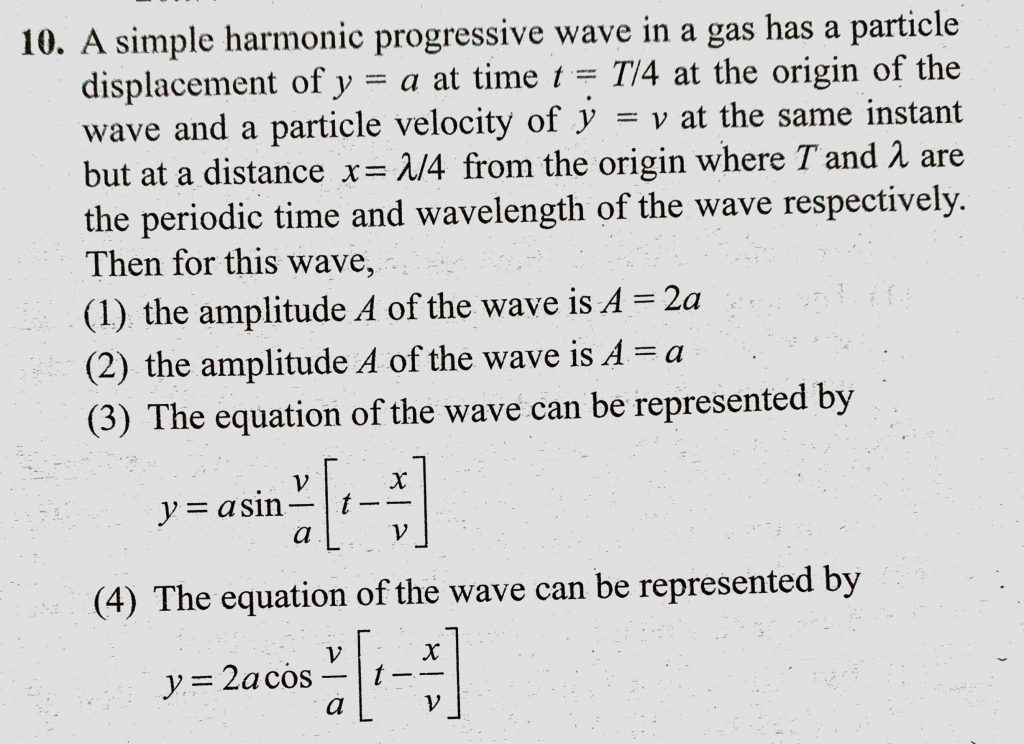 A simple harmonic progressive wave in a gas has a particle displacement of y = a at time t = T/4 at the origin of the wave and a particle velocity of y = v at the same instant but A simple harmonic progressive wave in a gas has a particle displacement of y = a at time t = T/4 at the origin of the wave and a particle velocity of y = v at the same instant but November 5, 2020 Category: Uncategorised (JEE Advanced Physics by BM Sharma + GMP Solutions) , Facebook Messenger WhatsApp Share this:TwitterFacebook Related