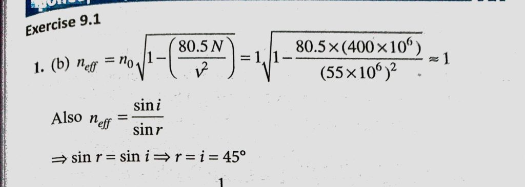 A sky wave with a frequency 55 MHz is incident on D-region of earth’s atmosphere at 45. The angle of refraction is (electron density for D-region is 400 electron/cm^3) A sky wave with a frequency 55 MHz is incident on D-region of earth's atmosphere at 45. The angle of refraction is (electron density for D-region is 400 electron/cm^3) October 22, 2020 Category: Uncategorised (JEE Advanced Physics by BM Sharma + GMP Solutions) , Facebook Messenger WhatsApp Share this:TwitterFacebook Related
