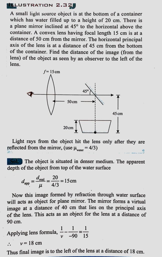 A small light source object is at the bottom of a container which has water filled up to a height of 20 cm. There is a plane mirror inclined at 45 to the horizontal above the container. A small light source object is at the bottom of a container which has water filled up to a height of 20 cm. There is a plane mirror inclined at 45 to the horizontal above the container. September 9, 2020 Category: Uncategorised (JEE Advanced Physics by BM Sharma + GMP Solutions) , Facebook Messenger WhatsApp Share this:TwitterFacebook Related
