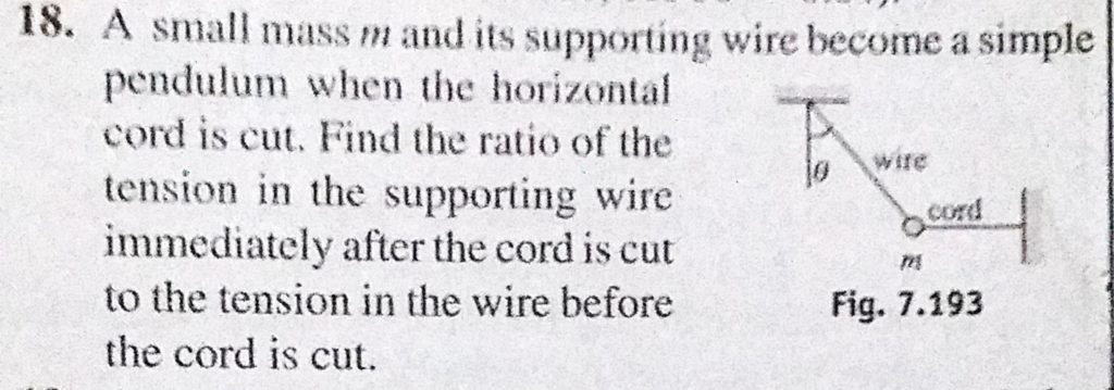 A small mass m and its supporting wire become a simple pendulum when the horizontal cord is cut. Find the ratio of the tension in the supporting wire immediately after the cord is cut A small mass m and its supporting wire become a simple pendulum when the horizontal cord is cut. Find the ratio of the tension in the supporting wire immediately after the cord is cut September 30, 2020 Category: Uncategorised (JEE Advanced Physics by BM Sharma + GMP Solutions) , Facebook Messenger WhatsApp Share this:TwitterFacebook Related