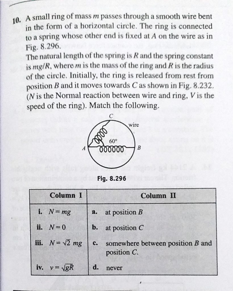 A small ring of mass m passes through a smooth wire bent in the form of a horizontal circle. The ring is connected to a spring whose other end is fixed at A on the wire as in Fig. 8.296. A small ring of mass m passes through a smooth wire bent in the form of a horizontal circle. The ring is connected to a spring whose other end is fixed at A on the wire as in Fig. 8.296. October 5, 2020 Category: Uncategorised (JEE Advanced Physics by BM Sharma + GMP Solutions) , Facebook Messenger WhatsApp Share this:TwitterFacebook Related