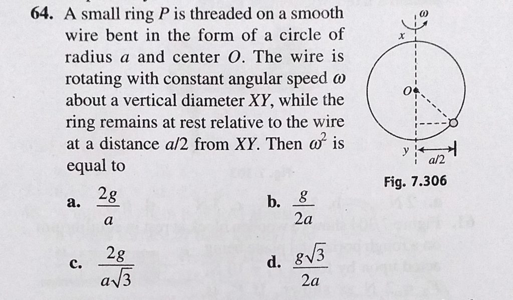 A small ring P is threaded on a smooth wire bent in the form of a circle of radius a and center O. The wire is rotating with constant angular speed omega about a vertical diameter XY, A small ring P is threaded on a smooth wire bent in the form of a circle of radius a and center O. The wire is rotating with constant angular speed omega about a vertical diameter XY October 1, 2020 Category: Uncategorised (JEE Advanced Physics by BM Sharma + GMP Solutions) , Facebook Messenger WhatsApp Share this:TwitterFacebook Related