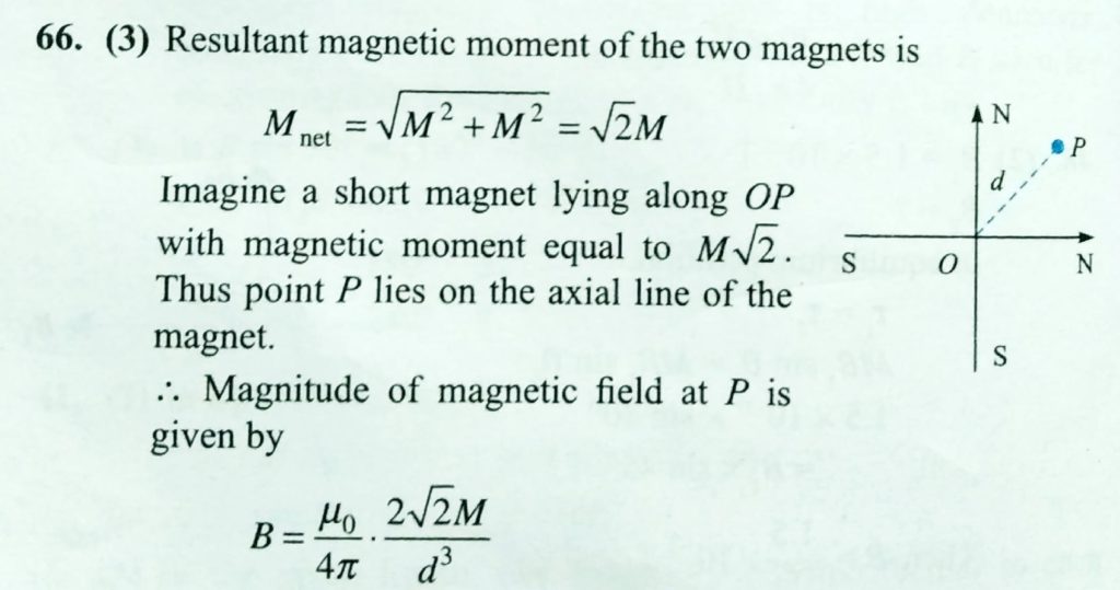 Two short magnets of equal dipole moments M are fastened perpendicularly at their centres (figure). The magnitude of the magnetic field at a distance d from the centre on the bisector of the right angle is The magnet of a vibration magnetometer is heated so as to reduce its magnetic moment by 36 %. By doing this the period time of the magnetometer will October 18, 2020 Category: Uncategorised (JEE Advanced Physics by BM Sharma + GMP Solutions) , Facebook Messenger WhatsApp Share this:TwitterFacebook Related
