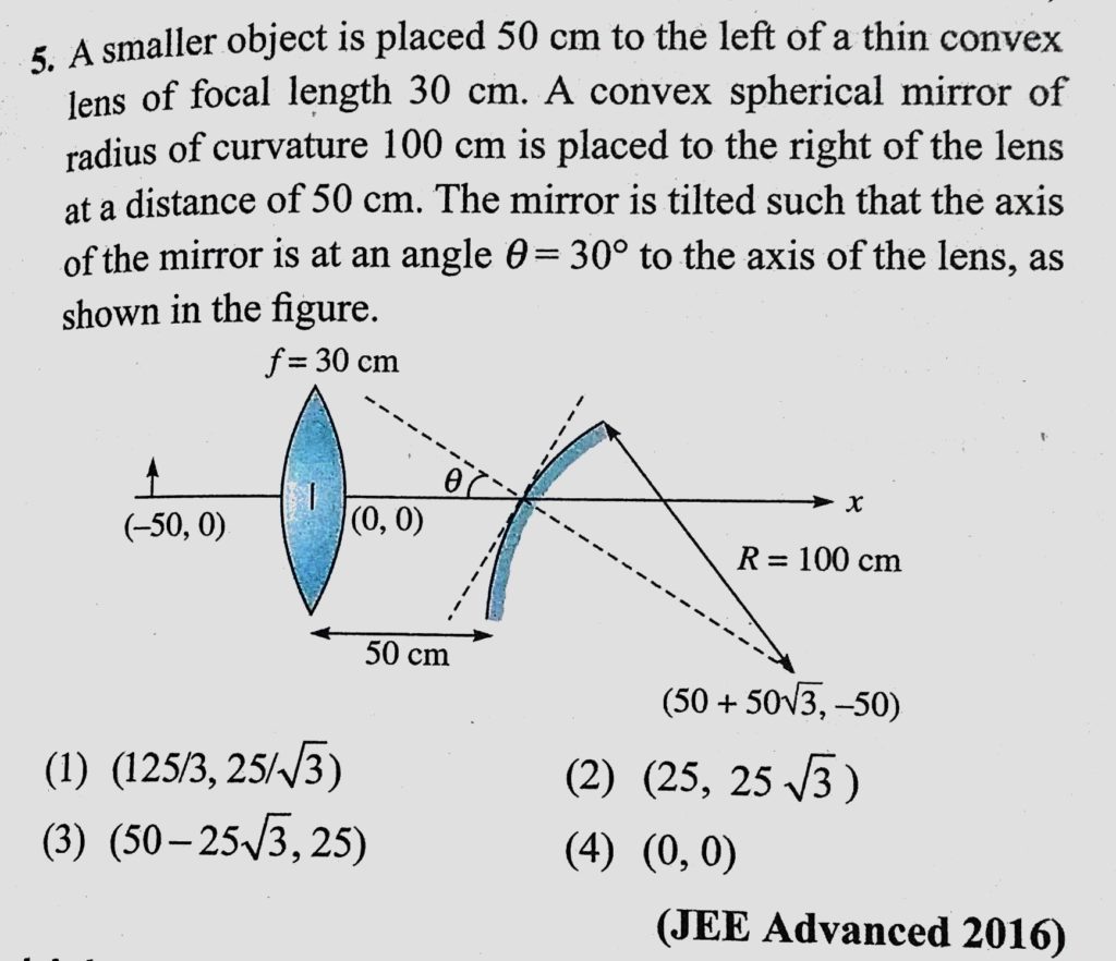 A smaller object is placed 50 cm to the left of a thin convex lens of focal length 30 cm. A convex spherical mirror of radius of curvature 100 cm is placed to the right of the lens A smaller object is placed 50 cm to the left of a thin convex lens of focal length 30 cm. A convex spherical mirror of radius of curvature 100 cm is placed to the right of the lens October 9, 2020 Category: Uncategorised (JEE Advanced Physics by BM Sharma + GMP Solutions) , Facebook Messenger WhatsApp Share this:TwitterFacebook Related