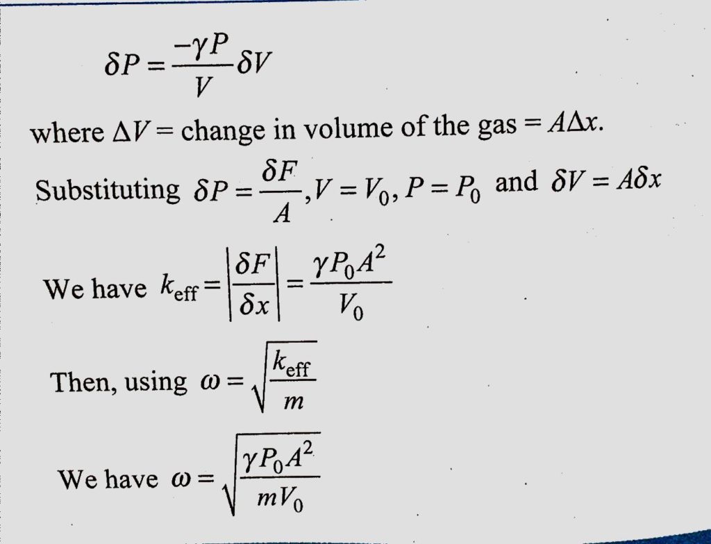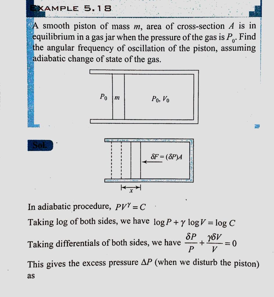 A smooth piston of mass m, area of cross-section A is in equilibrium in a gas jar when pressure of the gas is P0. Find the angular frequency of oscillation of the piston, assuming adiabatic change of state of the gas. A smooth piston of mass m area of cross-section A is in equilibrium in a gas jar when pressure of the gas is P0. Find the angular frequency of oscillation of the piston assuming adiabatic change of state of the gas. September 4, 2020 Category: Uncategorised (JEE Advanced Physics by BM Sharma + GMP Solutions) , Facebook Messenger WhatsApp Share this:TwitterFacebook Related