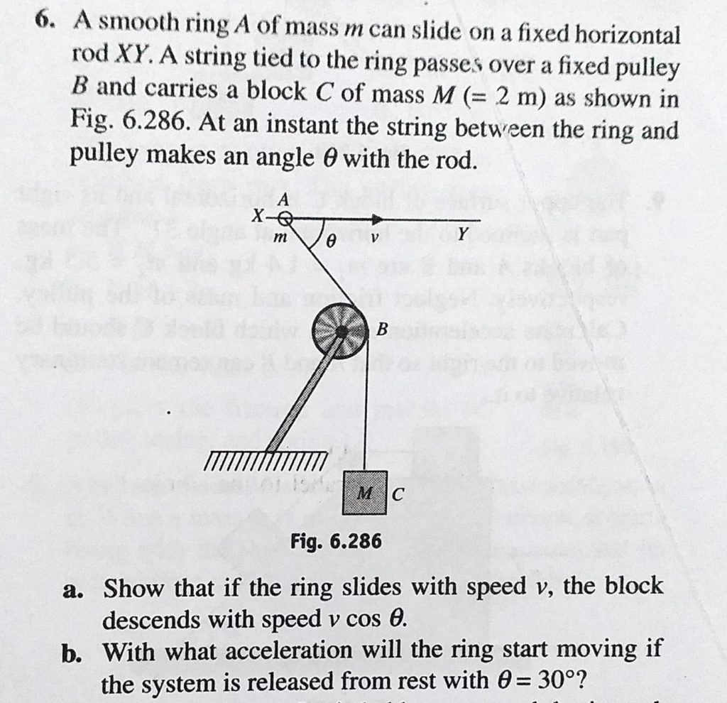 A smooth ring A of mass m can slide on a fixed horizontal rod XY. A string tied to the ring passes over a fixed pulley B and carries a block C of mass M ( = 2 m) as shown in Fig. 6.286. A smooth ring A of mass m can slide on a fixed horizontal rod XY. A string tied to the ring passes over a fixed pulley B and carries a block C of mass M ( = 2 m) as shown in Fig. 6.286. September 29, 2020 Category: Uncategorised (JEE Advanced Physics by BM Sharma + GMP Solutions) , Facebook Messenger WhatsApp Share this:TwitterFacebook Related