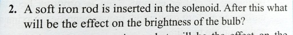 A soft iron rod is inserted in the solenoid . After this what will be the effect on the brightness of the bulb ? A soft iron rod is inserted in the solenoid . After this what will be the effect on the brightness of the bulb ? October 27, 2020 Category: Uncategorised (JEE Advanced Physics by BM Sharma + GMP Solutions) , Facebook Messenger WhatsApp Share this:TwitterFacebook Related