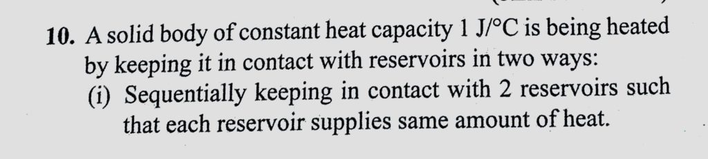 A solid body of constant heat capacity 1 J / C is being heated by keeping it in contact with reservoirs in two ways : (1) Sequentially keeping in contact with 2 reservoirs such that A solid body of constant heat capacity 1 J / C is being heated by keeping it in contact with reservoirs in two ways : (1) Sequentially keeping in contact with 2 reservoirs such that October 29, 2020 Category: Uncategorised (JEE Advanced Physics by BM Sharma + GMP Solutions) , Facebook Messenger WhatsApp Share this:TwitterFacebook Related