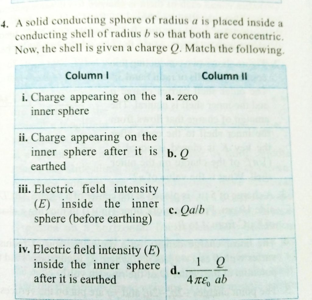 A solid conducting sphere of radius a is placed inside a conducting shell of ardius b so that both are concentric . Now, the shell is given a charge Q. Match the following. A solid conducting sphere of radius a is placed inside a conducting shell of ardius b so that both are concentric . Now the shell is given a charge Q. Match the following. November 6, 2020 Category: Uncategorised (JEE Advanced Physics by BM Sharma + GMP Solutions) , Facebook Messenger WhatsApp Share this:TwitterFacebook Related