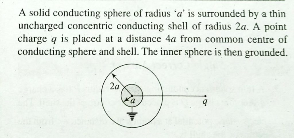 A solid conducting sphere of radius ‘a’ is surrounded by a thin uncharged concentric conducting shell of radius 2a. A point charge q is placed at a distance 4a from common centre of conducting sphere and shell. The inner sphere is then grounded Potential difference between centre and the surface of sphere of radius R having uniform volume charge density p with in it will be September 18, 2020 Category: Uncategorised (JEE Advanced Physics by BM Sharma + GMP Solutions) , Facebook Messenger WhatsApp Share this:TwitterFacebook Related