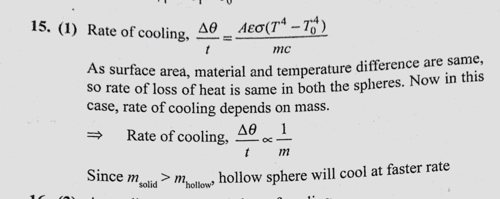 A solid sphere and a hollow sphere of the same material and size are heated to the same temperature and allowed to cool in the same surroundings. If the temperature difference between A solid sphere and a hollow sphere of the same material and size are heated to the same temperature and allowed to cool in the same surroundings. If the temperature difference between October 25, 2020 Category: Uncategorised (JEE Advanced Physics by BM Sharma + GMP Solutions) , Facebook Messenger WhatsApp Share this:TwitterFacebook Related