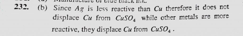 A solution of copper sulphate may be kept safely in the container made up of (a) Fe (b) Ag (c) Zn (d) Al A solution of copper sulphate may be kept safely in the container made up of (a) Fe (b) Ag (c) Zn (d) Al December 2, 2020 Category: Uncategorised (JEE Advanced Physics by BM Sharma + GMP Solutions) , Facebook Messenger WhatsApp Share this:TwitterFacebook Related