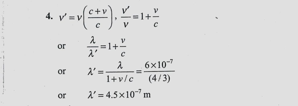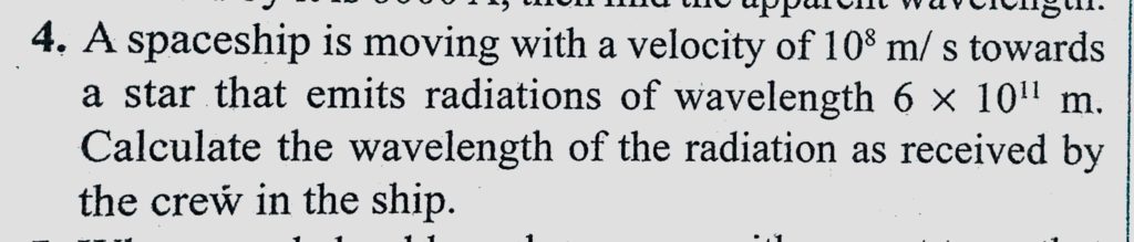 A spaceship is moving with a velocity of 10^8 m/s towards a star that emits radiations of wavelength 6 * 10^11 m. Calculate the wavelength of the radiation as received by the crew A spaceship is moving with a velocity of 10^8 m/s towards a star that emits radiations of wavelength 6 * 10^11 m. Calculate the wavelength of the radiation as received by the crew October 11, 2020 Category: Uncategorised (JEE Advanced Physics by BM Sharma + GMP Solutions) , Facebook Messenger WhatsApp Share this:TwitterFacebook Related