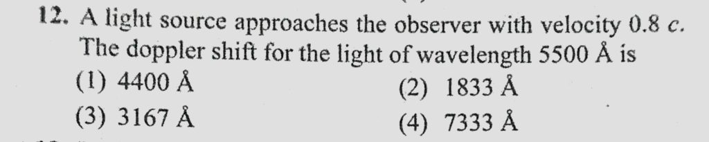 A light source approaches the observer with velocity 0.8 c. The doppler shift for the light of wavelength 5500 A is A light source approaches the observer with velocity 0.8 c. The doppler shift for the light of wavelength 5500 A is October 11, 2020 Category: Uncategorised (JEE Advanced Physics by BM Sharma + GMP Solutions) , Facebook Messenger WhatsApp Share this:TwitterFacebook Related
