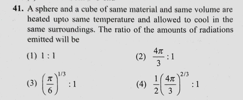 A sphere and a cube of same material and same volume are heated upto same temperature and allowed to cool in the same surroundings. The ratio of the amounts of radiations A sphere and a cube of same material and same volume are heated upto same temperature and allowed to cool in the same surroundings. The ratio of the amounts of radiations October 25, 2020 Category: Uncategorised (JEE Advanced Physics by BM Sharma + GMP Solutions) , Facebook Messenger WhatsApp Share this:TwitterFacebook Related