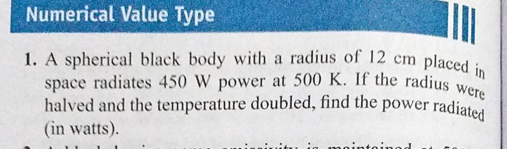 A spherical black body with a radius of 12 cm placed in space radiates 450 W power at 500 K. If the radius were halved and the temperature doubled, find the power radiated A spherical black body with a radius of 12 cm placed in space radiates 450 W power at 500 K. If the radius were halved and the temperature doubled find the power radiated October 25, 2020 Category: Uncategorised (JEE Advanced Physics by BM Sharma + GMP Solutions) , Facebook Messenger WhatsApp Share this:TwitterFacebook Related