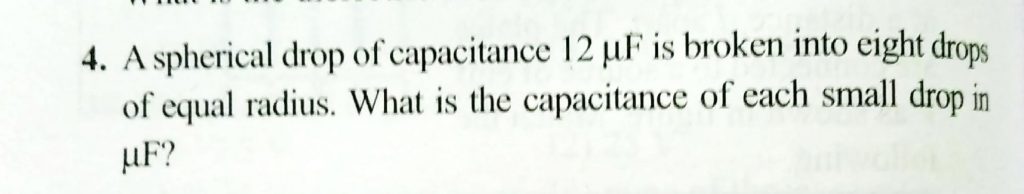A spherical drop of capacitance 12 muF is broken into eight drops of equal radius . What is the capacitance of each small drop in muF? A spherical drop of capacitance 12 muF is broken into eight drops of equal radius . What is the capacitance of each small drop in muF? November 10, 2020 Category: Uncategorised (JEE Advanced Physics by BM Sharma + GMP Solutions) , Facebook Messenger WhatsApp Share this:TwitterFacebook Related