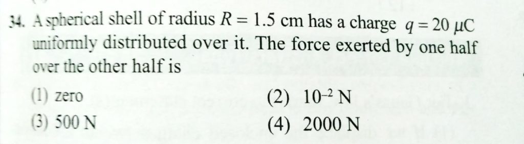 A spherical shell of radius R = 1.5 cm has a charge q = 20 muC uniformly distributed over it. The force exerted by one half over the other half is A spherical shell of radius R = 1.5 cm has a charge q = 20 muC uniformly distributed over it. The force exerted by one half over the other half is October 31, 2020 Category: Uncategorised (JEE Advanced Physics by BM Sharma + GMP Solutions) , Facebook Messenger WhatsApp Share this:TwitterFacebook Related
