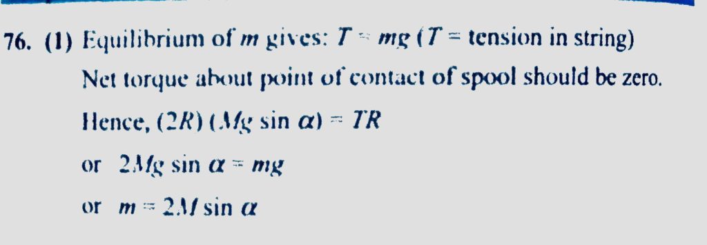 A spool of mass M and radius 2R lies on an inclined plane as shown in figure. A light thread is wound around the connecting tube of the spool and its free end carries a weight of mass m. The value of m so that system is in equilibrium is A Disc of mass m and radius R moves in the x-y plane as shown in figure. The angular momentum of the disc about the origin O at the instant shown is In the figure shown mass of both September 30, 2020 Category: Uncategorised (JEE Advanced Physics by BM Sharma + GMP Solutions) , Facebook Messenger WhatsApp Share this:TwitterFacebook Related