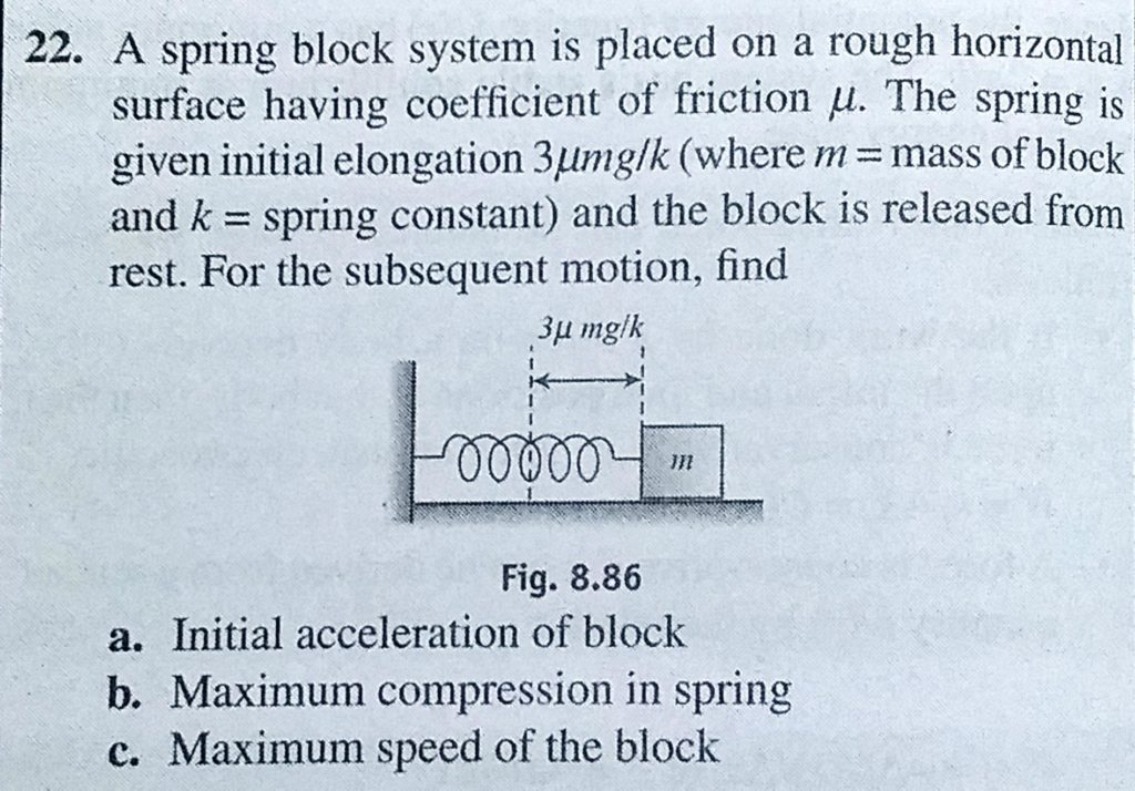 A spring block system is placed on a rough horizontal surface having coefficient of friction mu. The spring is given initial elongation 3 mu m g/k (where m = mass of block and k = spring constant) A spring block system is placed on a rough horizontal surface having coefficient of friction mu. The spring is given initial elongation 3 mu m g/k (where m = mass of block and k = spring constant) October 2, 2020 Category: Uncategorised (JEE Advanced Physics by BM Sharma + GMP Solutions) , Facebook Messenger WhatsApp Share this:TwitterFacebook Related