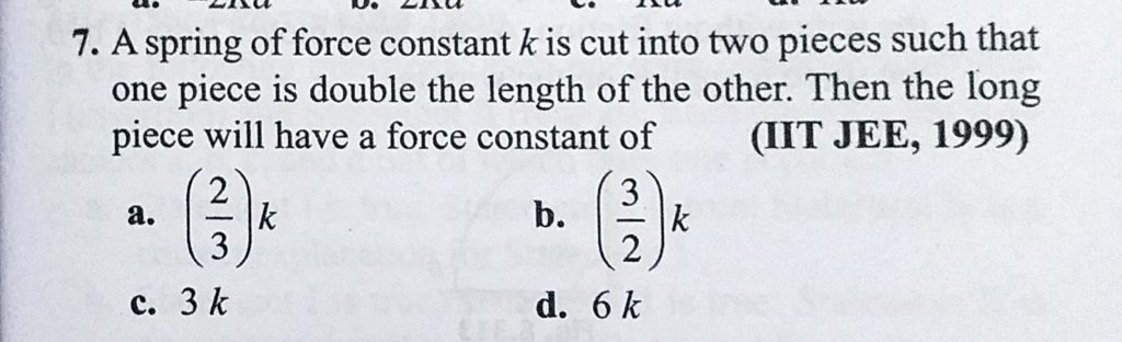 A spring of force constant k is cut into two pieces such that one piece is double the length of the other. Then the long piece will have a force constant of A spring of force constant k is cut into two pieces such that one piece is double the length of the other. Then the long piece will have a force constant of October 5, 2020 Category: Uncategorised (JEE Advanced Physics by BM Sharma + GMP Solutions) , Facebook Messenger WhatsApp Share this:TwitterFacebook Related