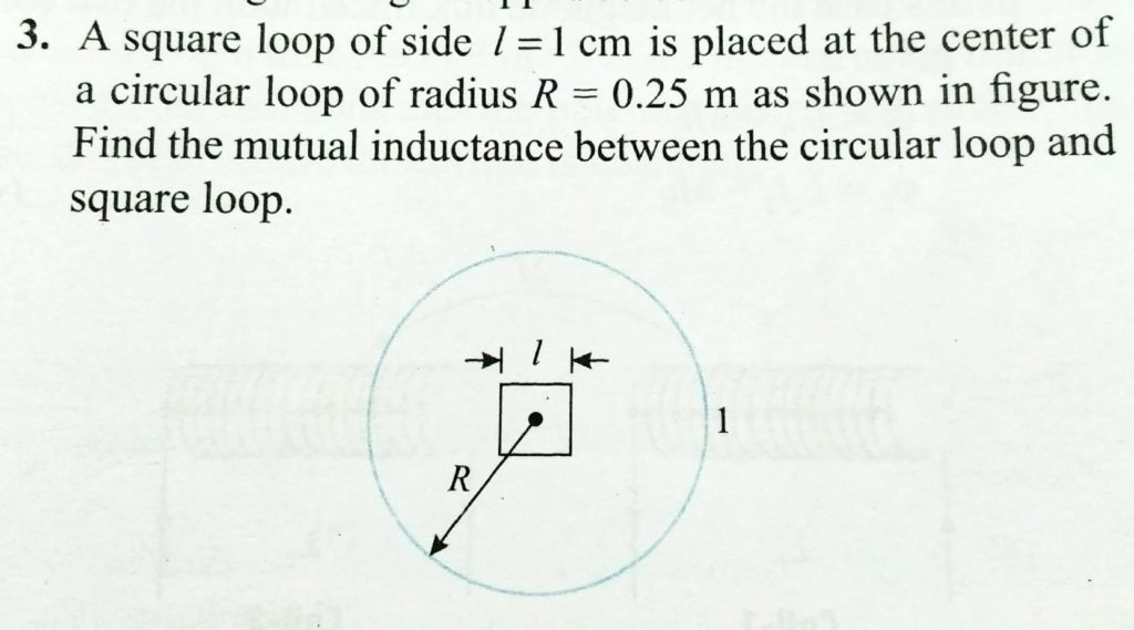 A square loop of side l = 1 cm is placed at the centre of a circular loop of radius R = 0.25 m as shown in figure. Find the mutual inductance between the circular loop and square loop. A square loop of side l = 1 cm is placed at the centre of a circular loop of radius R = 0.25 m as shown in figure. Find the mutual inductance between the circular loop and square loop. October 21, 2020 Category: Uncategorised (JEE Advanced Physics by BM Sharma + GMP Solutions) , Facebook Messenger WhatsApp Share this:TwitterFacebook Related