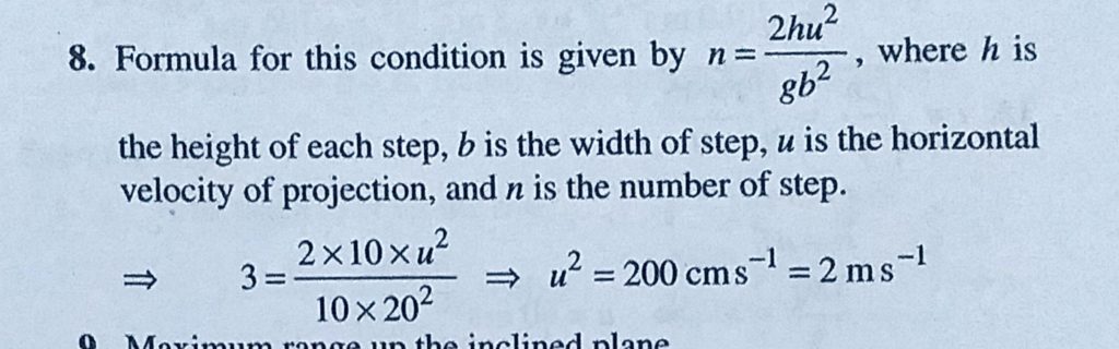 A staircase contains three steps each 10 cm high and 20 cm wide. What should be the minimum horizontal velocity of a ball rolling off the uppermost plane so as to hit directly the lowest plane? A staircase contains three steps each 10 cm high and 20 cm wide. What should be the minimum horizontal velocity of a ball rolling off the uppermost plane so as to hit directly the lowest plane? September 21, 2020 Category: Uncategorised (JEE Advanced Physics by BM Sharma + GMP Solutions) , Facebook Messenger WhatsApp Share this:TwitterFacebook Related