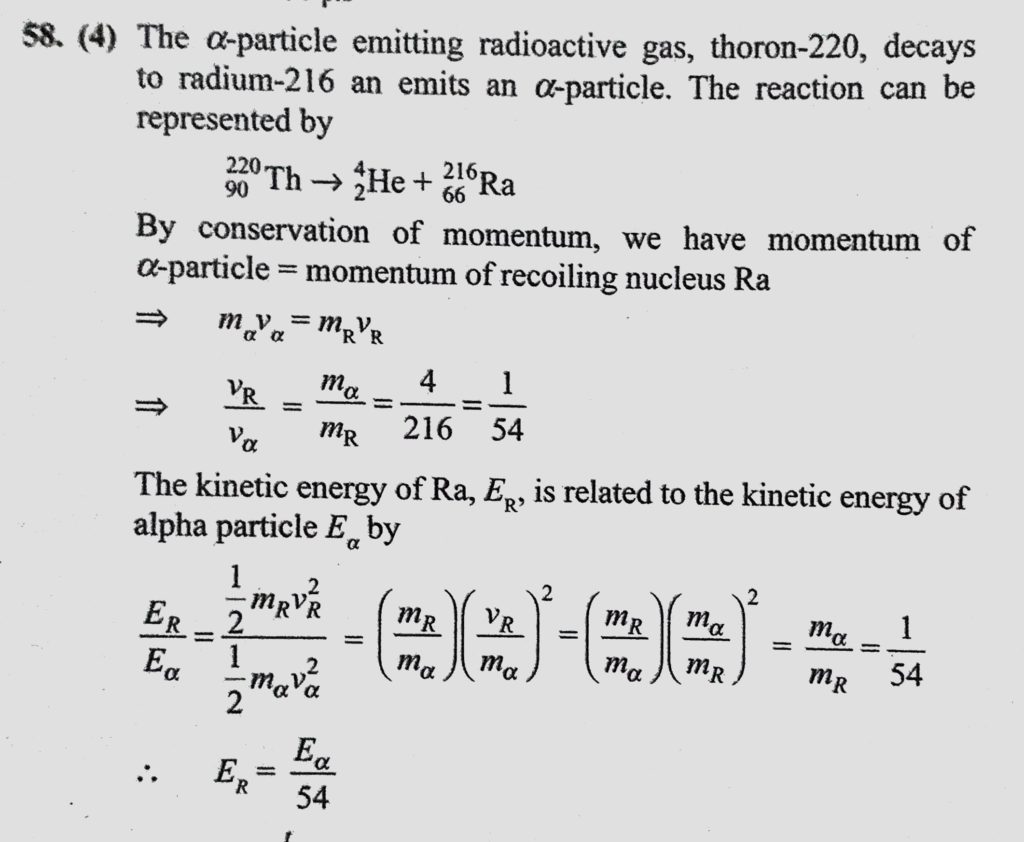 A stationary thorium nucleus ( A = 220, Z = 90 ) emits an alpha particle with kinetic energy E alpha. What is the kinetic energy of the recoiling nucleus ? A stationary thorium nucleus ( A = 220 Z = 90 ) emits an alpha particle with kinetic energy E alpha. What is the kinetic energy of the recoiling nucleus ? October 18, 2020 Category: Uncategorised (JEE Advanced Physics by BM Sharma + GMP Solutions) , Facebook Messenger WhatsApp Share this:TwitterFacebook Related
