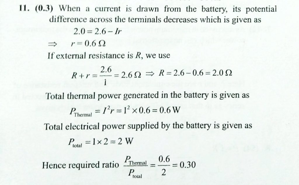 A storage battery with emfE=2.6V loaded with an external resistance produces a current I=1.0A. In this case the potential difference between the terminals of the storage battery equals V=2.0V. Find teh thermal power generated in the battery and the power develop in it electric forces.
