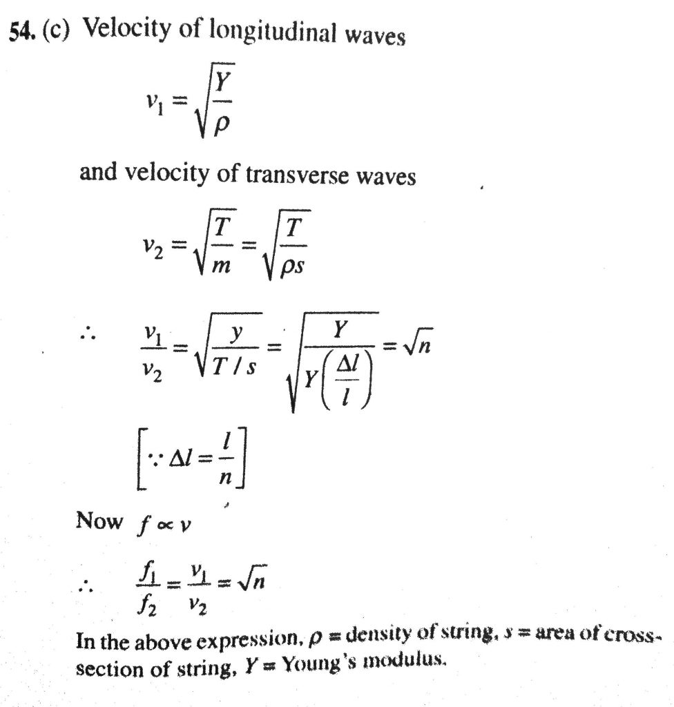 A string is under tension so that its length is increased by 1/n times its original length . The ratio of fundamental frequency of longitudinal vibrations and transverse vibrations will be A string is under tension so that its length is increased by 1/n times its original length. The ratio of fundamental frequency of longitudinal vibrations and transverse vibrations will be December 7, 2020 Category: Uncategorised (JEE Advanced Physics by BM Sharma + GMP Solutions) , Facebook Messenger WhatsApp Share this:TwitterFacebook Related