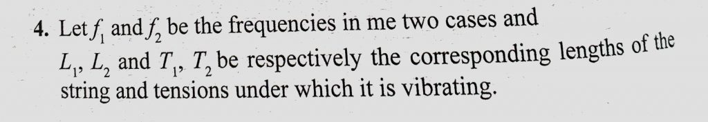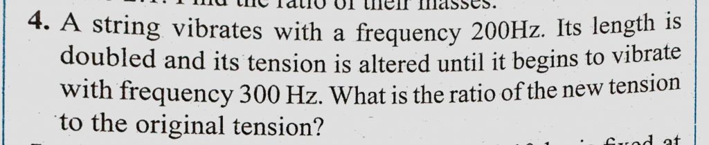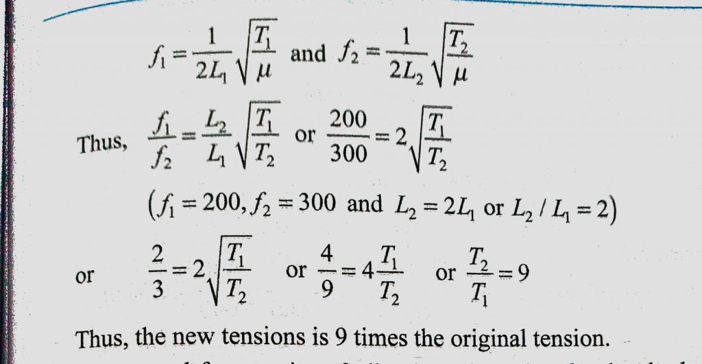 A string vibrates with a frequency 200Hz. Its length is doubled and its tension is altered until it begins to vibrate with frequency 300 Hz. What is the ratio of the new tension to the A string vibrates with a frequency 200Hz. Its length is doubled and its tension is altered until it begins to vibrate with frequency 300 Hz. What is the ratio of the new tension to the November 5, 2020 Category: Uncategorised (JEE Advanced Physics by BM Sharma + GMP Solutions) , Facebook Messenger WhatsApp Share this:TwitterFacebook Related