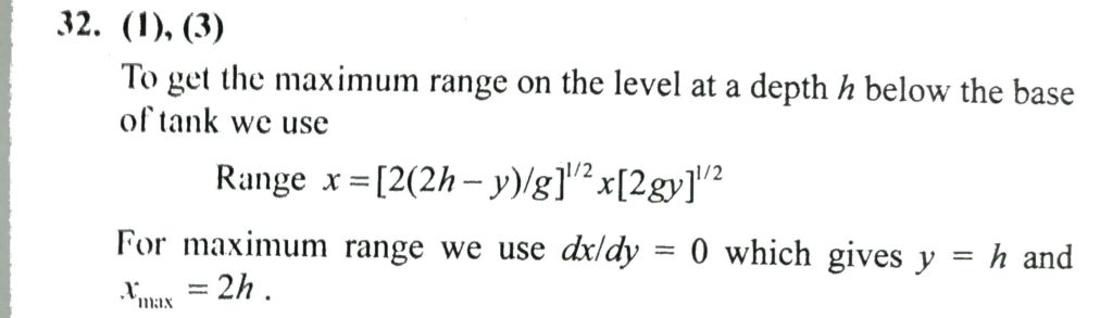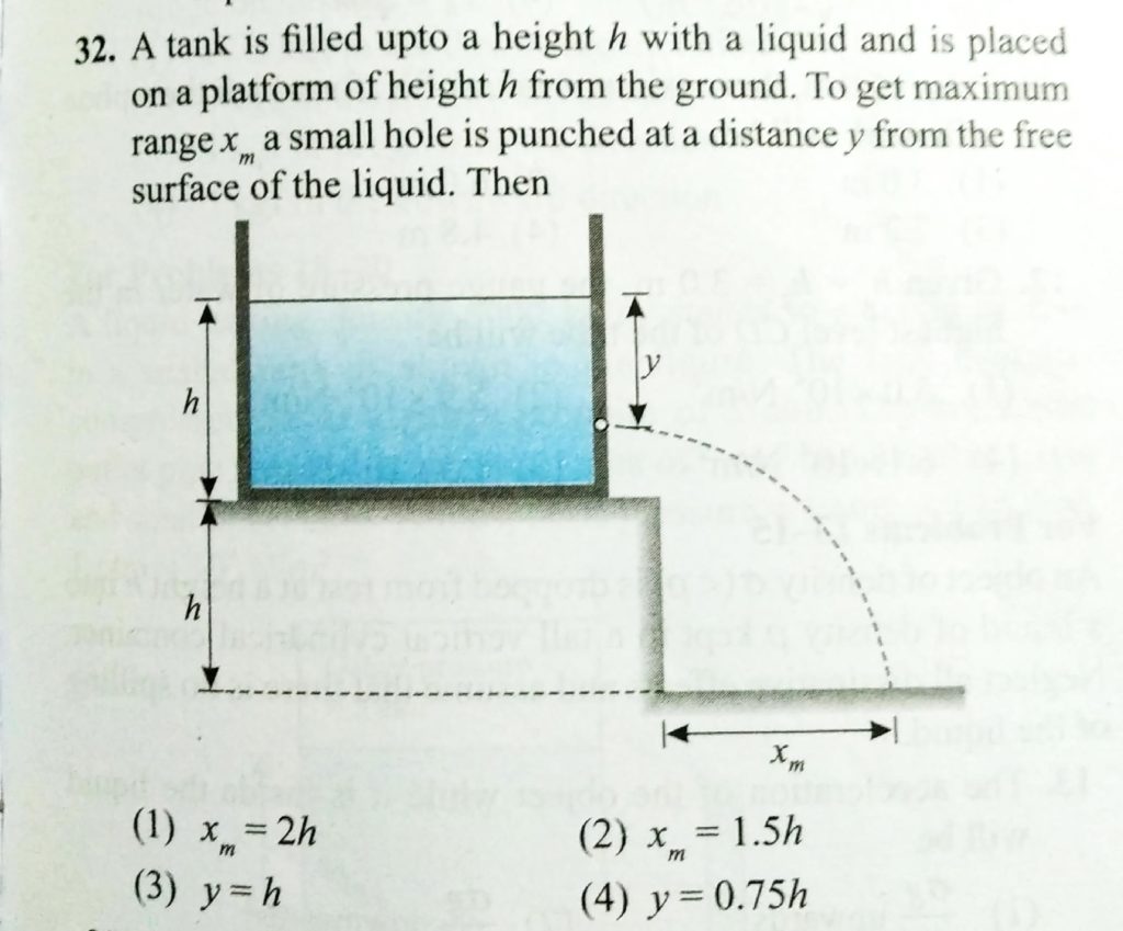A tank is filled upto a height h with a liquid and is placed on a platform of height h from the ground. To get maximum range xm a small hole is punched at a distance of y from the free surface of the liquid. The vessel shown in the figure has a two sections of areas of cross-section A1 and A2. A liquid of density ρ fills both th sections up to a height h in each Neglect atmospheric pressure. October 8, 2020 Category: Uncategorised (JEE Advanced Physics by BM Sharma + GMP Solutions) , Facebook Messenger WhatsApp Share this:TwitterFacebook Related
