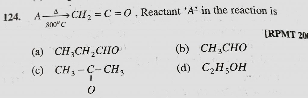 A to CH2 = C = O, Reagent ‘A’ in the reaction is (a) CH3CH2CHO (b) CH3CHO (c) (d) C2H5OH A to CH2 = C = O Reagent 'A' in the reaction is (a) CH3CH2CHO (b) CH3CHO (c) (d) C2H5OH February 12, 2021 Category: Uncategorised (JEE Advanced Physics by BM Sharma + GMP Solutions) , Facebook Messenger WhatsApp Share this:TwitterFacebook Related