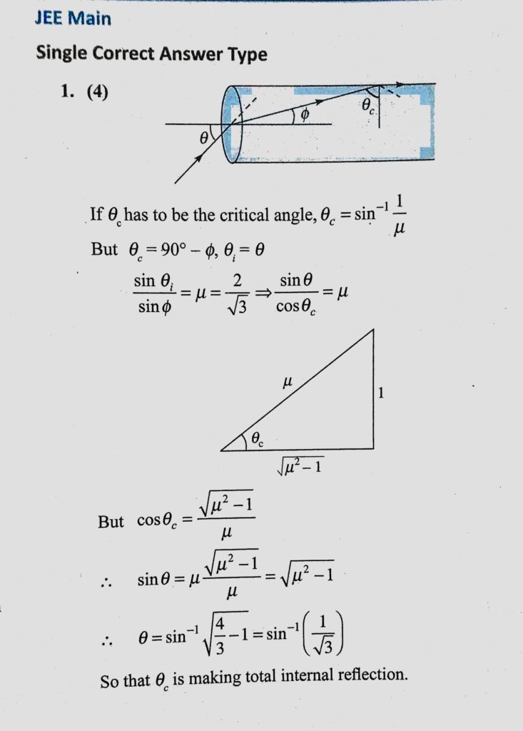 A transparent solid cylindrical rod has a refractive index of 2 / root 3 . It is surrounded by air. A light ray is incident at the midpoint of one end of the rod as shown in the figure. A transparent solid cylindrical rod has a refractive index of 2 / root 3 . It is surrounded by air. A light ray is incident at the midpoint of one end of the rod as shown in the figure. October 7, 2020 Category: Uncategorised (JEE Advanced Physics by BM Sharma + GMP Solutions) , Facebook Messenger WhatsApp Share this:TwitterFacebook Related