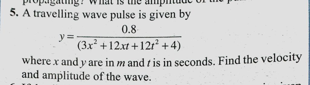 A travelling wave pulse is given by Y = 0.8/ (xx^2 + 12xt + 12t^2 + 4) where x and y are in m and t is in seconds. Find the velocity and amplitude of the wave. A travelling wave pulse is given by Y = 0.8/ (xx^2 + 12xt + 12t^2 + 4) where x and y are in m and t is in seconds. Find the velocity and amplitude of the wave. November 1, 2020 Category: Uncategorised (JEE Advanced Physics by BM Sharma + GMP Solutions) , Facebook Messenger WhatsApp Share this:TwitterFacebook Related