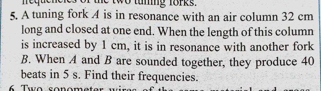 A tuning fork A is in resonance with an air column 32 cm long and closed at one end. When the length of this column is increased by 1 cm, it is in resonance with another fork A tuning fork A is in resonance with an air column 32 cm long and closed at one end. When the length of this column is increased by 1 cm it is in resonance with another fork November 5, 2020 Category: Uncategorised (JEE Advanced Physics by BM Sharma + GMP Solutions) , Facebook Messenger WhatsApp Share this:TwitterFacebook Related