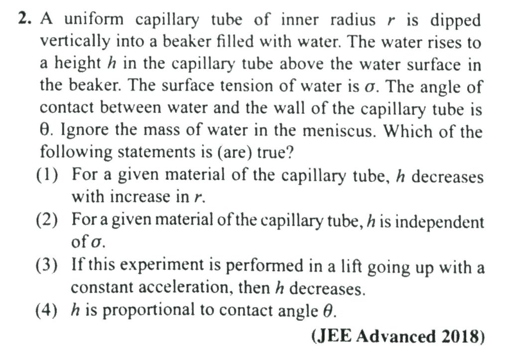 A uniform capillary tube of inner radius r is dipped vertically into a beaker filled with water. The water rises to a height h in the capillary tube above the water surface in the beaker. The surface tension of water is σ. The angle of contact between water and the wall of the capillary tube is θ. Ignore the mass of water in the meniscus. Which of the following statements is (are) true?