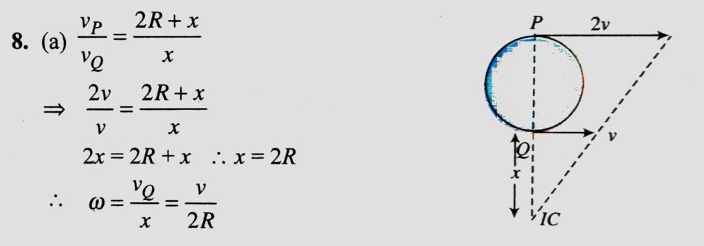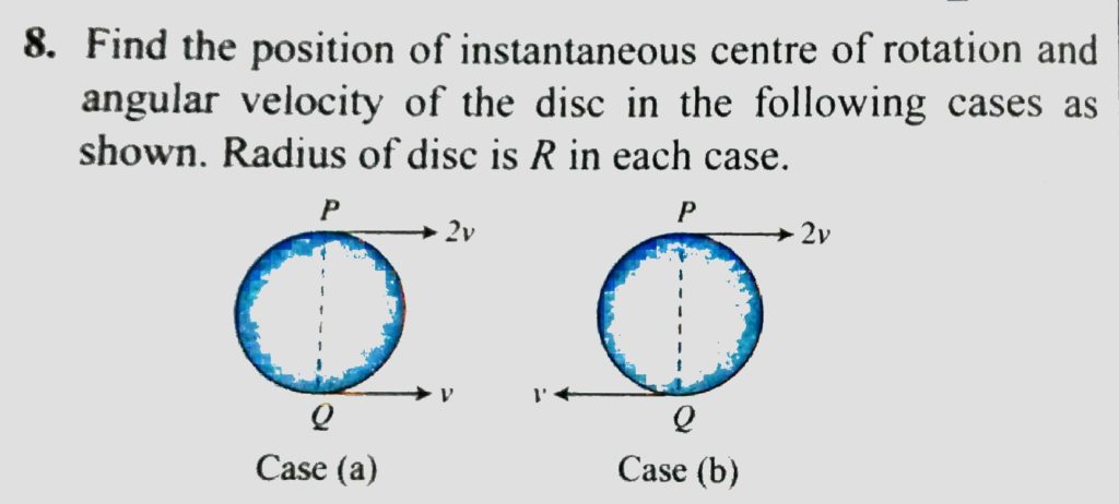 Find the position of instantaneous centre of rotation and angular velocity of the disc in the following cases as shown. Radius of disc in R in each case. Find the position of instantaneous centre of rotation and angular velocity of the disc in the following cases as shown. Radius of disc in R in each case. September 25, 2020 Category: Uncategorised (JEE Advanced Physics by BM Sharma + GMP Solutions) , Facebook Messenger WhatsApp Share this:TwitterFacebook Related